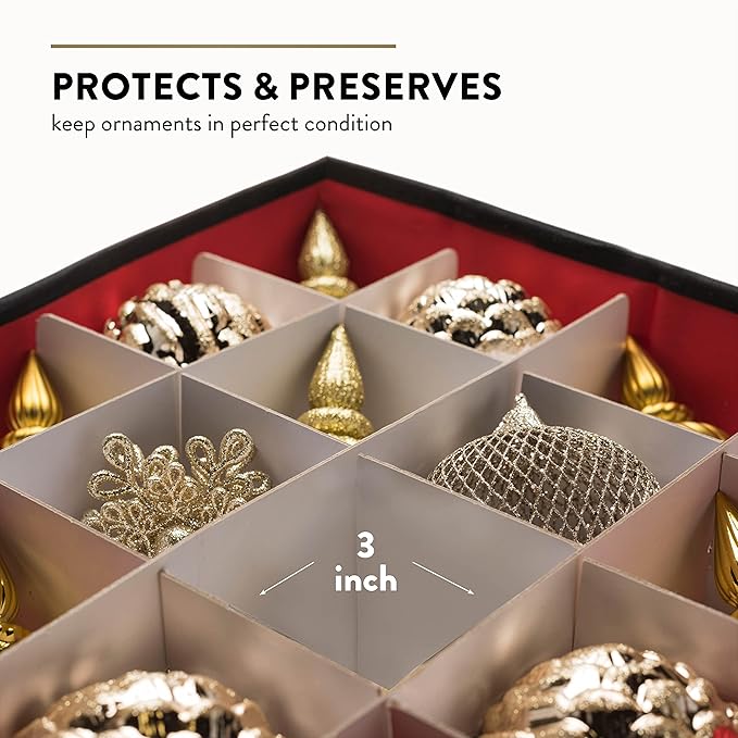 - FESTIVE HOLIDAY BLISS - Prepare for joy and merriment with the cheery Christmas colors of this organizer. It adds a delightful pop of excitement and sophistication to your ornament storage. With lively hues that capture the spirit of the season, it transforms the task of packing up the holidays into a pleasurable and joyful experience.