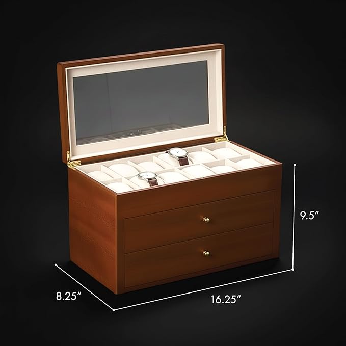 - Sturdy Frame With Clear View: Sturdy wooden glass see-thru top frame for stylish watch storage.