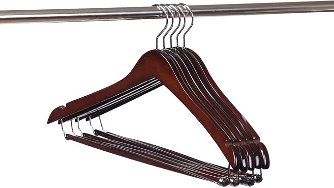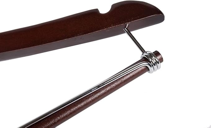 10 Quality Hangers Wooden Curved Hangers Beautiful Sturdy Suit Coat Hangers with Locking Bar Chrome Hooks (10)