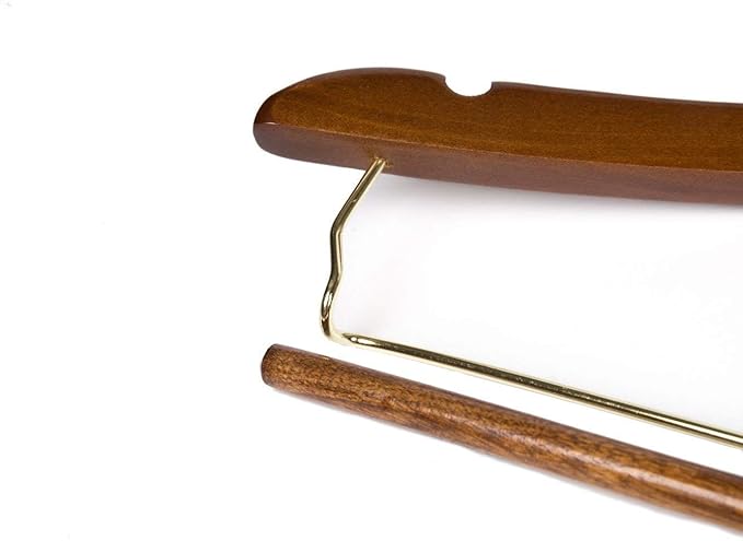 10 Quality Hangers Curved Wooden Hangers Beautiful Sturdy Suit Coat Hangers with Locking Bar Gold Hooks Walnut Finish (10)