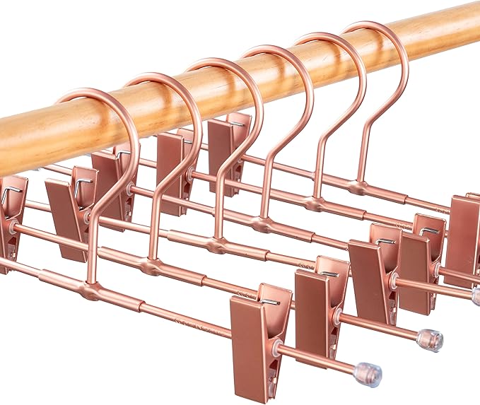 Pants Hangers 11.8" Space Saving Rose Gold Clothes Skirts Hanger 20 Pack Adjustable Clips for Jeans Trousers Display Closet Storage Scarves Slack Garment Multifunctional Rack