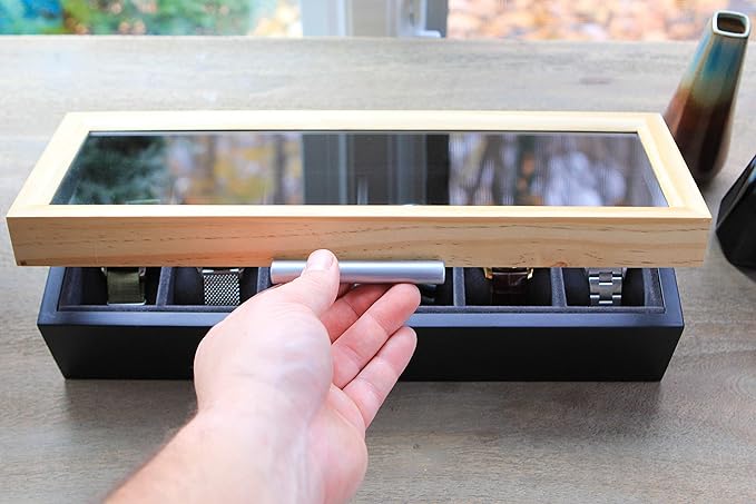 - 6-SLOTS - Safely and easily store up to six watches. We designed this display case to have enough space underneath the lid for you watches to comfortably fit.