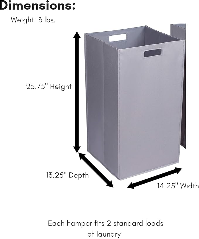 - SPACIOUS INTERIOR: Each laundry hamper can hold up to 2 standard loads of dirty clothes