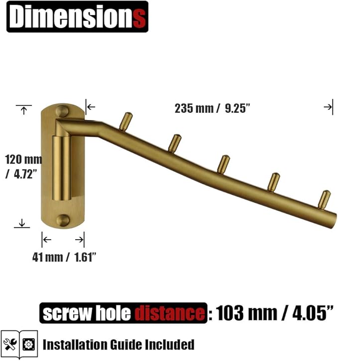 JQK Folding Clothes Hanger Rack, Stainless Steel Swing Arm Hook Holder, Clothing Hanging System Drying Closet Storage Organizer Brushed Gold Wall Mount, SHR100-BG