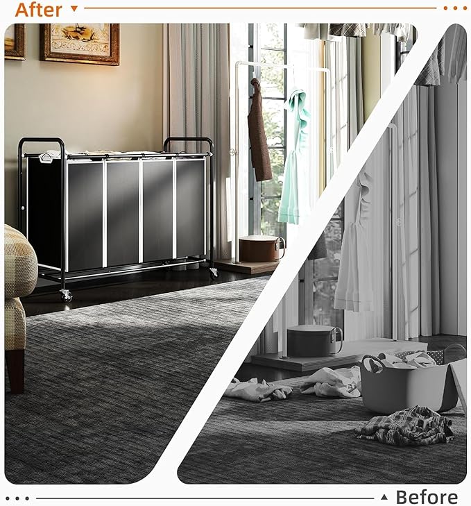 - [ 4-Compartment Divider – Sort in a Snap ]: 4 sections and removable bags make separating lights, darks, and delicates quick and satisfying