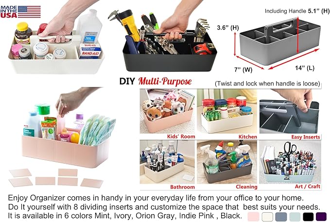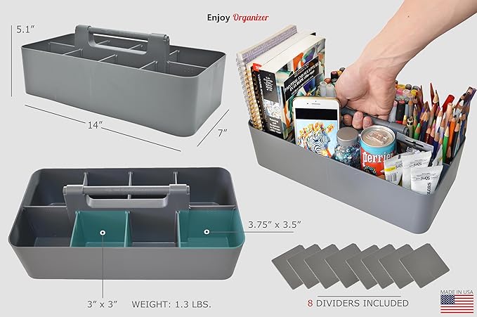 -Large Carry Caddy Bin Basket Portable Office Desk Storage DIY- MADE IN USA (Orion Gray)