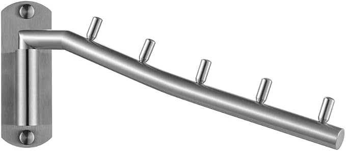 JQK Folding Clothes Hanger Rack, Stainless Steel Swing Arm Hook Holder, Clothing Hanging System Drying Closet Storage Organizer Brushed Finished Wall Mount, SHR100-BN