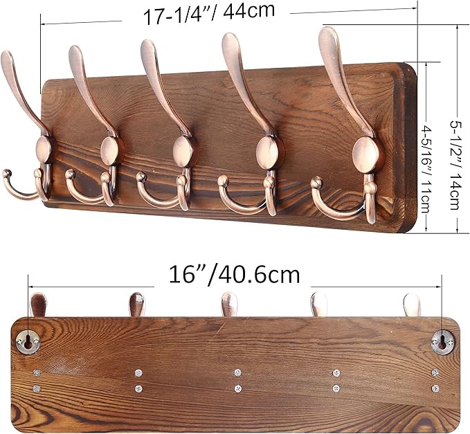 - 【Already Assembled Wall Coat Rack】 The aluminum alloy hook has been screwed on the solid wood base. SIZE: 17-1/4 (L) x 4-5/16 (W) x 13/16 (Thick) inches.