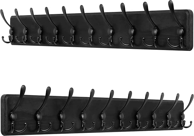 - 【Large Capicity Wall Hook Rack】Utility wall mount rack with 10 triple hooks for hanging coat, heavy duty coat, hats, clothes, scarf, backpack, jacket, and more.