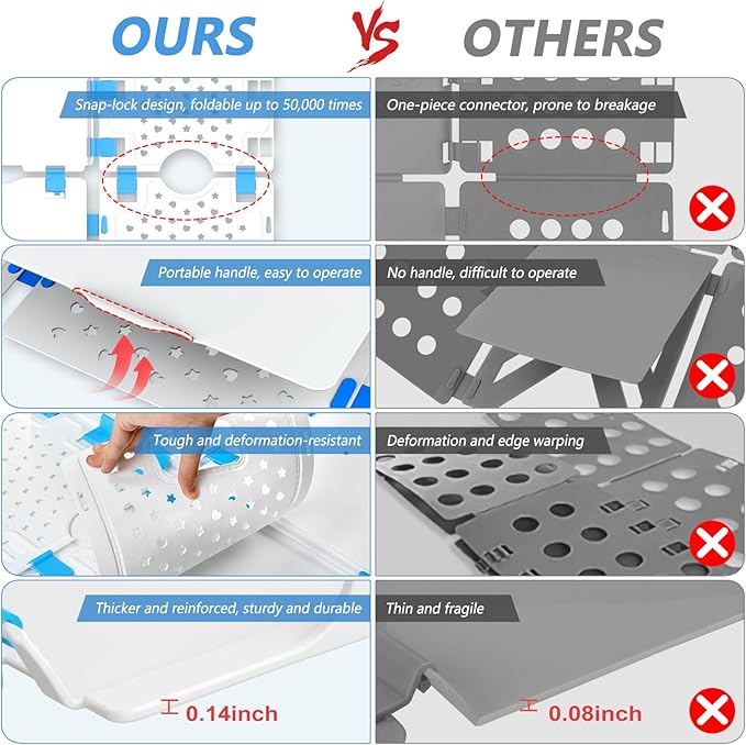 - High Quality: The clothes folding board is made of eco-friendly plastic, strong and durable, resistant to deformation and breakage, with an independent buckle design for more flexible folding.