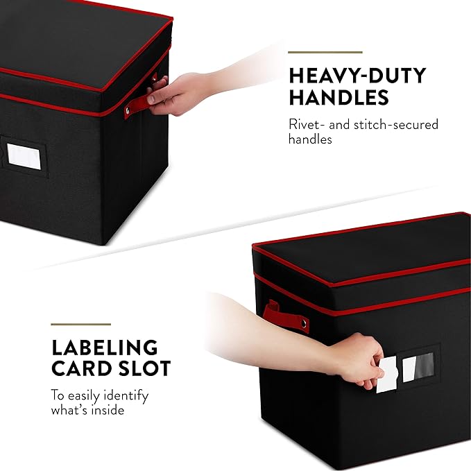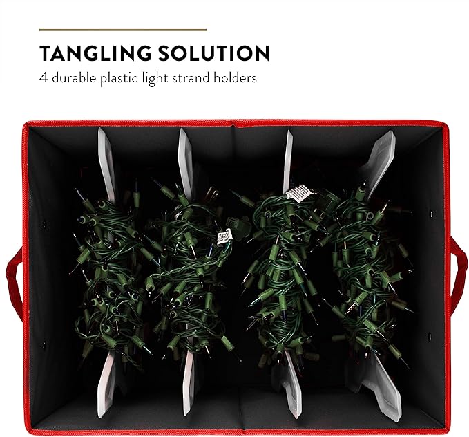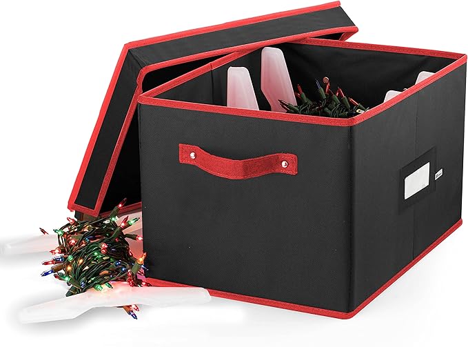 - STRONG - Crafted from Non-woven fabric, this storage box shields your holiday lights from water and fading. The included lid adds extra protection and allows for convenient stacking. Simply place the fabric-covered panel inside the bottom of the box for added structure, and you're all set!