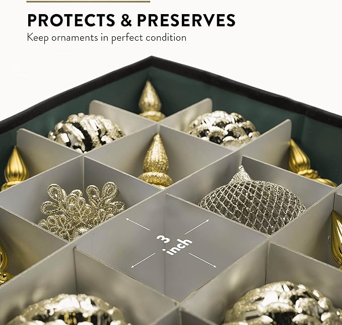 - FESTIVE HOLIDAY BLISS - Prepare for joy and merriment with the cheery Christmas colors of this organizer. It adds a delightful pop of excitement and sophistication to your ornament storage. With lively hues that capture the spirit of the season, it transforms the task of packing up the holidays into a pleasurable and joyful experience.