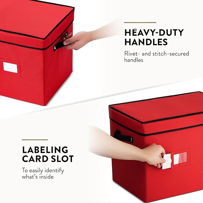 - MAGICAL ACCESS - Our ornament box organizer is meant for easy access and use. This storage box includes a card slot to make digging out the decorations each year simpler, with no guess work.