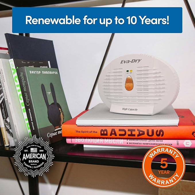 - LESS WASTE | LASTS FOR YEARS: The E-500 is a renewable dehumidifier that lasts up to 10 years, providing long-lasting moisture control without the need for refills. It’s ideal for gun safes and other small, enclosed spaces.