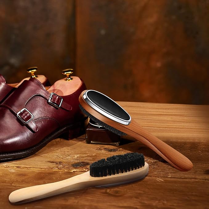 - Double-sided design: these brushes feature 3 functions in 1, that is to say, one brush can function as suit brush, a hair remover as well as a shoehorn simultaneously; Each brush has black bristles on one side and soft velvet on the other side, which can be applied to different fabrics