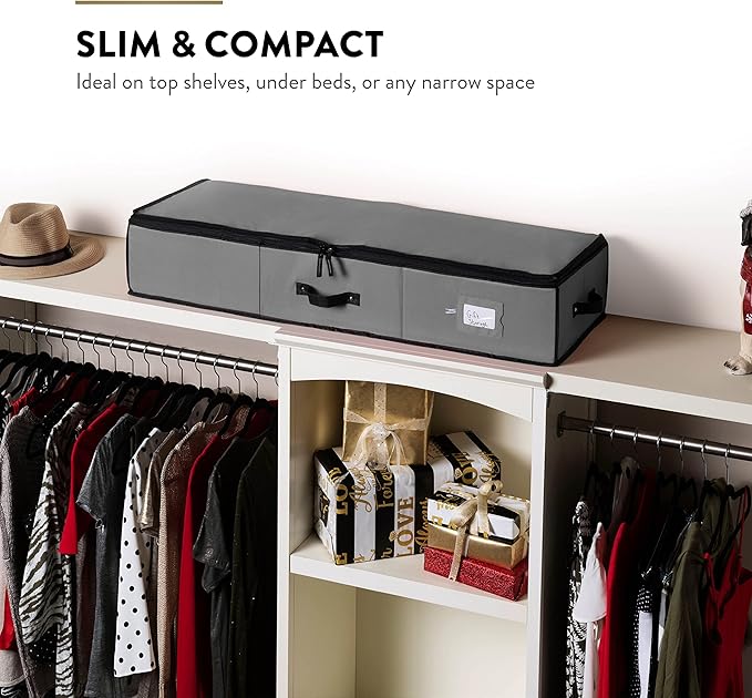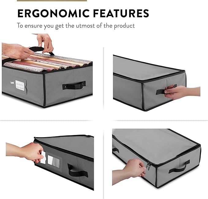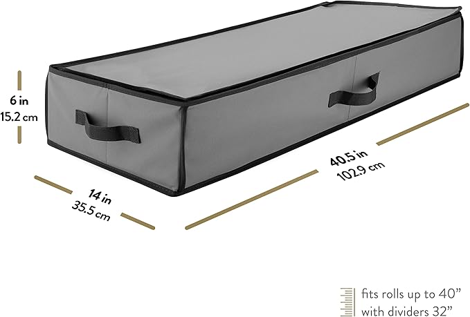 - SPACE SAVING WONDER - Our flat, slim wrapping paper storage containers are expertly designed to fit perfectly in deep shelves, narrow spaces, against walls, and even under beds! When the holiday season is over, simply collapse the containers and store them with ease in closets, garages, attics, or sheds. It's a merry solution for optimizing your space.