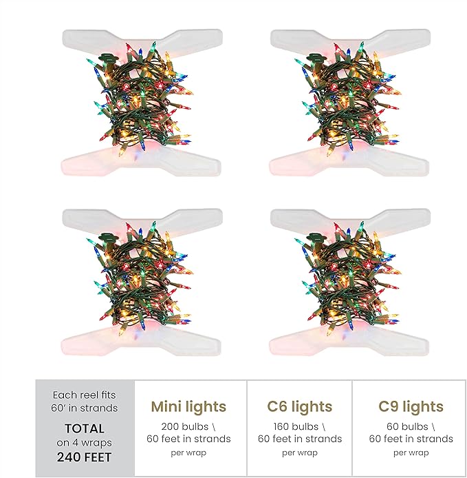 ZOBER Christmas Light Storage Reels - Christmas Light Organizer With 4 Plastic Wheels - Fits 200 Mini Lights Per Spool, Lights Storage - Strong & Durable Material - Stitched Reinforced Handles - Gray