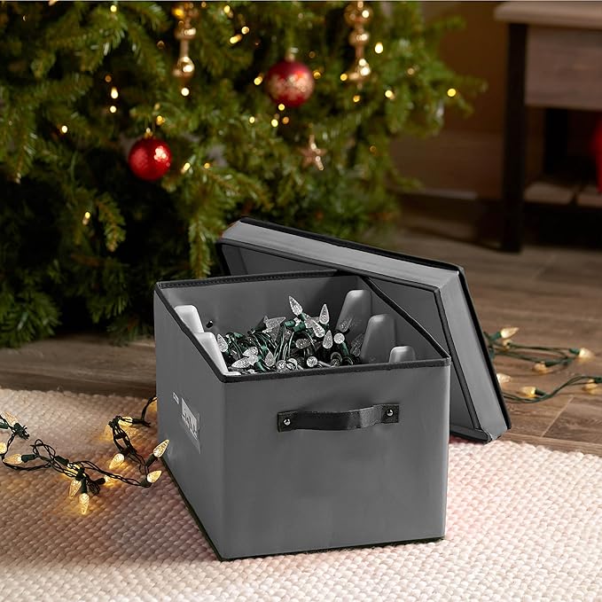 - STRONG - Crafted from Non-woven fabric, this storage box shields your holiday lights from water and fading. The included lid adds extra protection and allows for convenient stacking. Simply place the fabric-covered panel inside the bottom of the box for added structure, and you're all set!