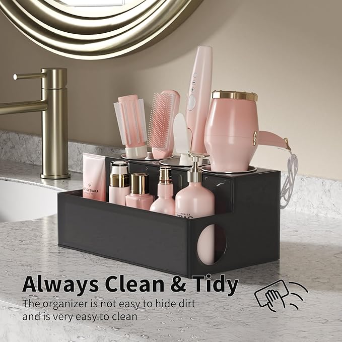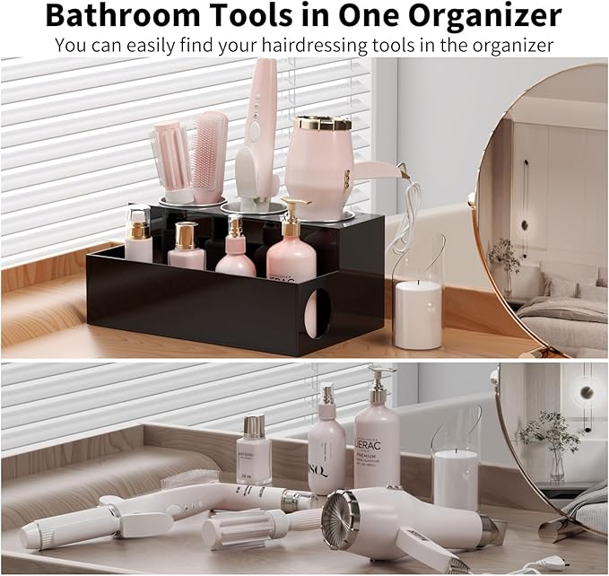 NIUBEE Hair Tool Organizer, Black Acrylic Hair Dryer and Styling Holder, Bathroom Countertop Blow Dryer Holder, Vanity Caddy Storage Stand for Accessories, Makeup, Toiletries