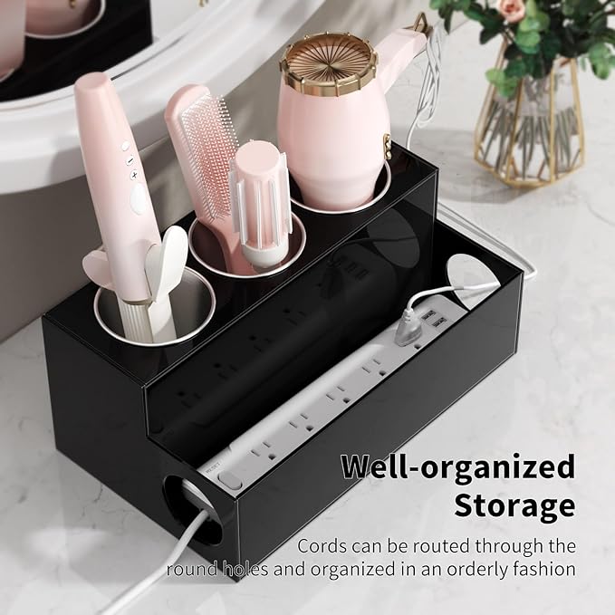- CONVENIENT DESIGN - Extra side hole: You can put the surge protector ring there and place it on your hair tools, which brings convenience to your daily use,the hair styling tools organizer easily organizes all the tools, at a glance, you can easily get what you want.