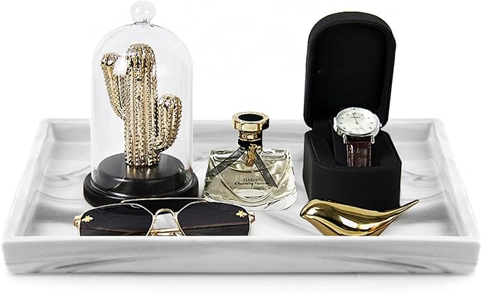 - HIGH QUALITY: The vanity tray is made of high quality ceramic with round edges and smooth glazed finish, durable and easy to clean