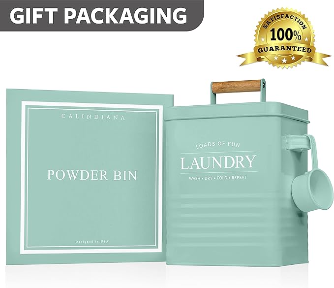 - CALINDIANA LAUNDRY COLLECTION: Fill your laundry room with Calindiana Laundry Collection! We feature modern farmhouse laundry room style and are focused on enhancing laundry room organization and storage. Use this powder bin to store any laundry essentials of your choice (just not any liquids), get our dryer sheets holder to store dryer sheets or dryer balls, and also get our lint bin to use it as a lint trash can. Go get our entire laundry collection and you won’t be disappointed!