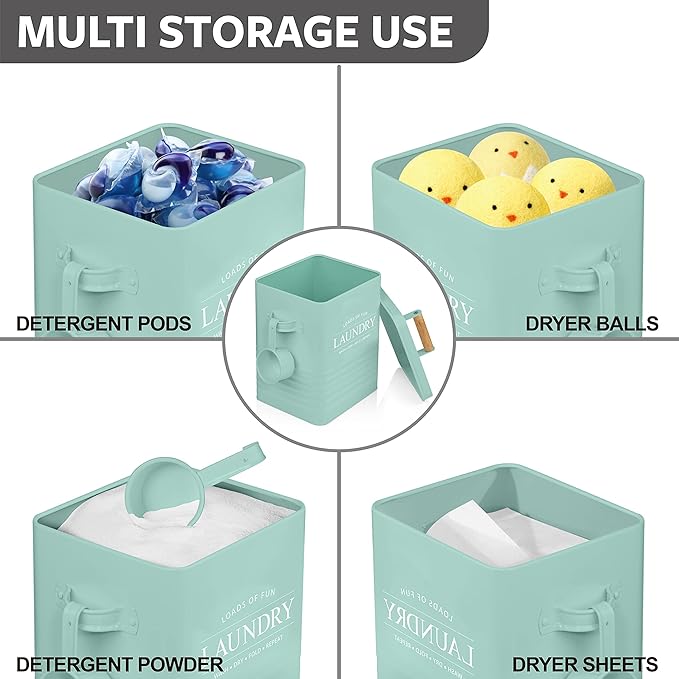 - MULTI-PURPOSE STORAGE TIN: Remember only a word ‘laundry’ is printed on this laundry storage tin. With that being said, why limit the purpose of this storage tin for laundry powder? This storage tin is perfect to store not only the laundry powder but detergent pods, dryer balls, dryer sheets, lint, and so much more
