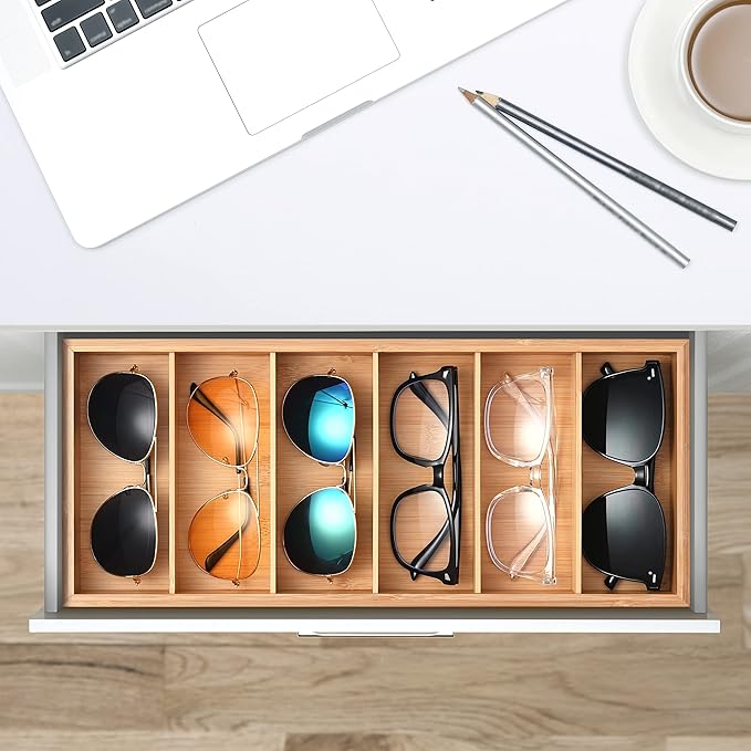 - 6 Slots Sunglass Storage Drawer Organizer - keep your eye wear organized and protective. Easily pick the most favorable when you need.