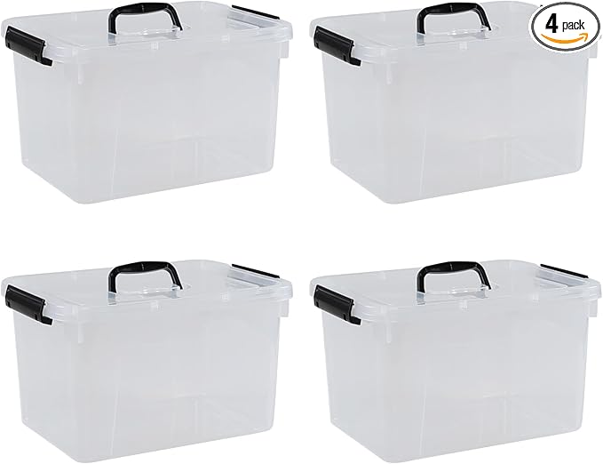 10 Liter Plastic Storage Box, 4-pack Clear Latch Storage Bins with Lids
