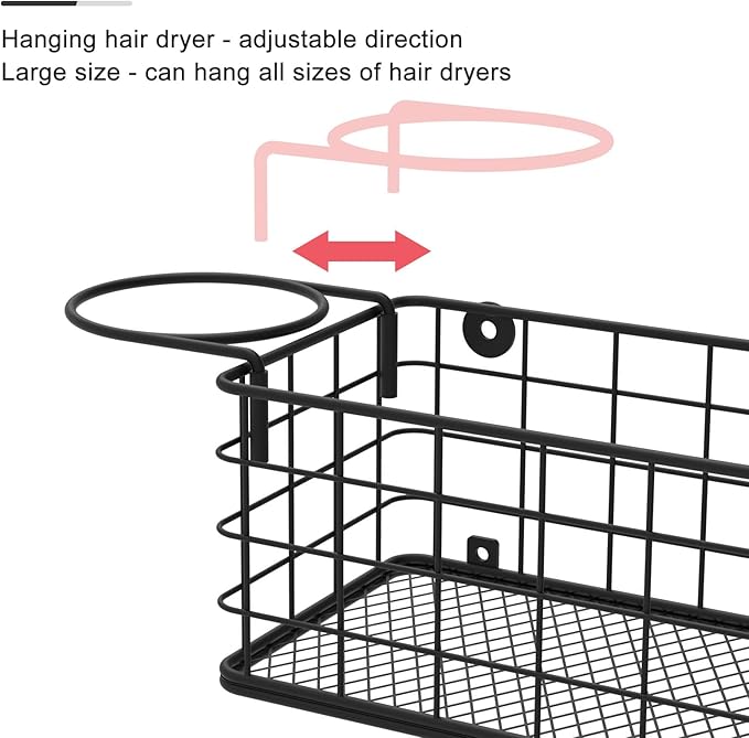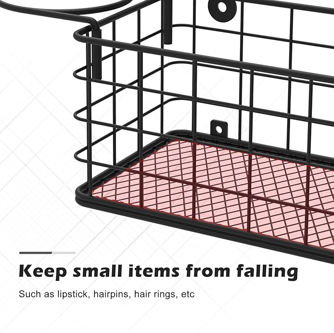 - ⚙️【5-in-1 design storage】The hair tool organizer is composed of 3 diamond-shaped nets, 1 basket,1 iron ring and hooks. It can separate all your hair care tools, such as hair spray, curling irons, razors, etc., and can also store your cosmetics in the basket, such as foundation liquid, lipstick, etc.