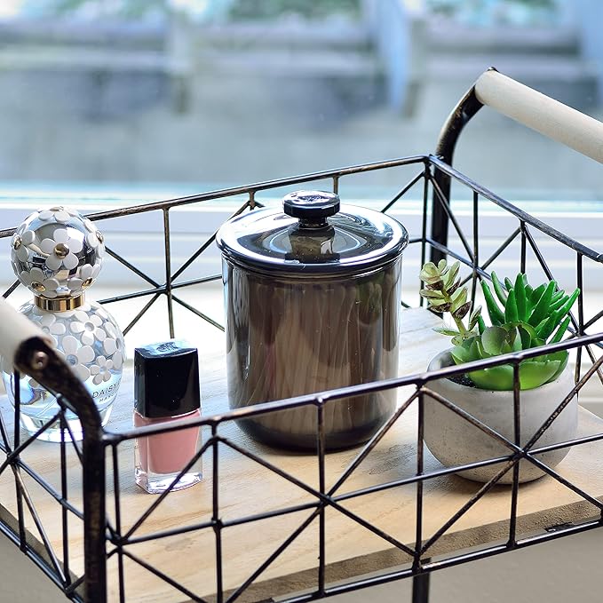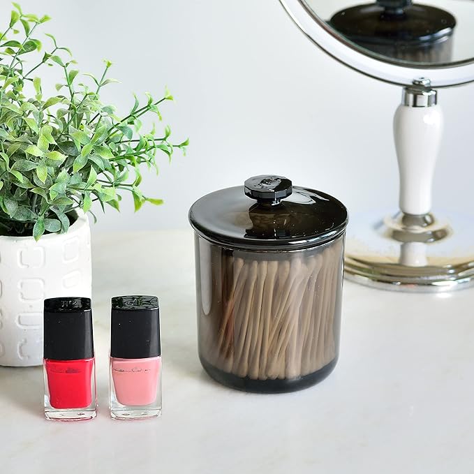- SIZE - Diameter: 3.25 inch Height: 3.75 inch. Perfect size for Q-tips, cotton balls, flossers, bath salts, makeup sponges, rubber bands, needles etc.