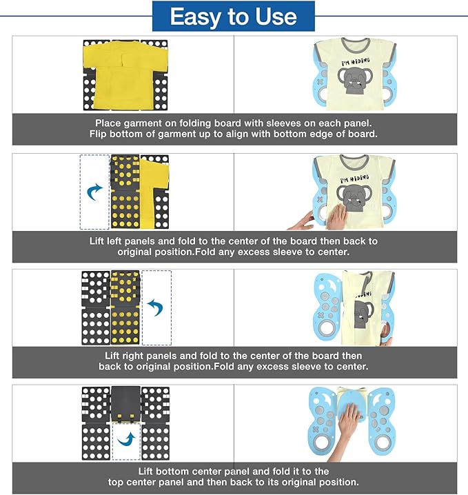 - Wide range of use: can fold a variety of clothes for adults and kids, including T-shirts, shirts, sweaters, pants, etc. Folds all clothes to the perfect uniform size for a flatter, neater fit.