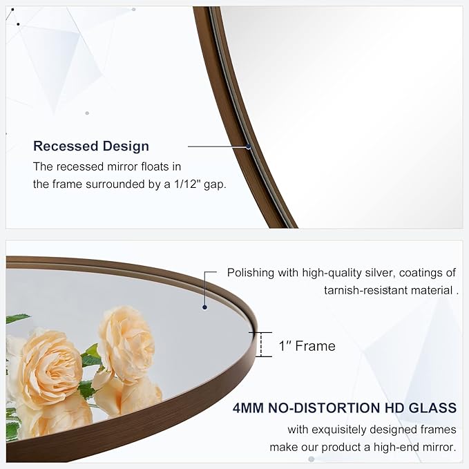 - Premium Quality: Crafted from heavy-duty SUS304 stainless steel, this oval bronze mirror is sturdy, durable, anti-scratch, and rustproof; The no-distortion HD glass provides clear reflections; the MDF backboard ensures safety and strength against humidity