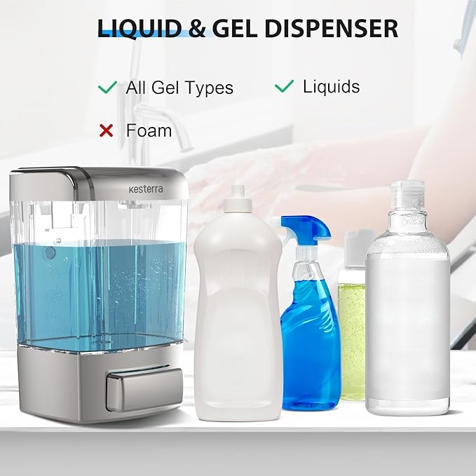 - Commercial soap dispenser: Hand soap dispenser for home, commercial and public institutions, offices, restaurants, healthcare facilities, schools, hospitals. Ideal for use with liquid soap, hand sanitizer, shampoo, conditioner, body wash, shower gel and lotions and so on