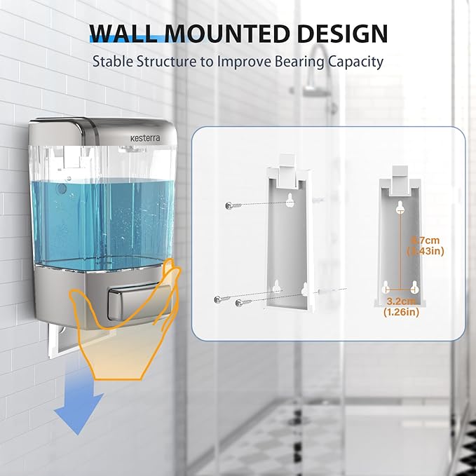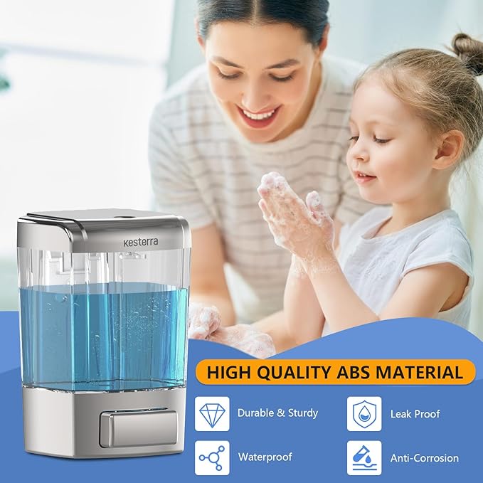- Manual soap dispenser: Kesterra soap dispenser is made of premium ABS plastic material to provide long-lasting strength and use, does not rust. Accurate distribution with the push of a wide, comfortable knob