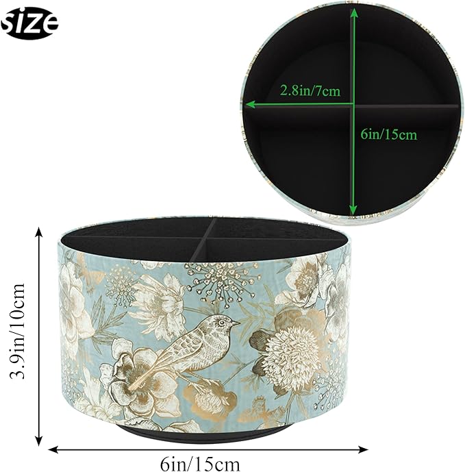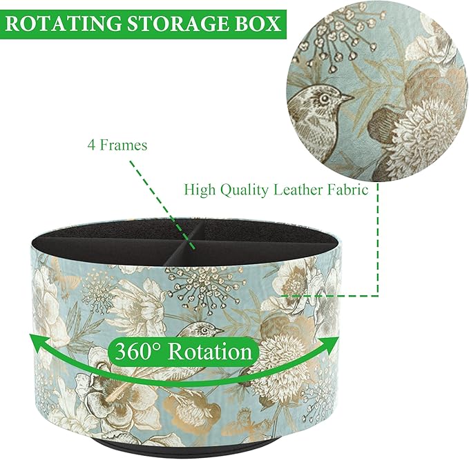 Hennaja Round Leather Art Supply Organizer,Remote Control Holder,360 Degree Rotating,Multi-Functional Pencil Holder,4 Compartments Desktop Stationary Organizer(1-Blue Bird)