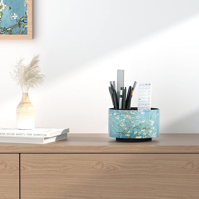 - ✎360° Revolving Design: You can freely rotate the pen holder steadily left and right,unique spinning base design allows easy access to items from any directions.The non-slip pads on the bottom keep it stay in place when rotating.