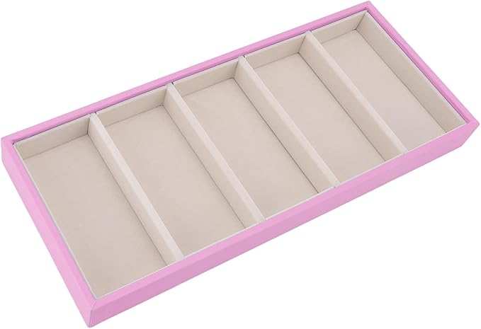 Sunglass Organizer, Pink Velvet Glasses Tray 5 Grids Stackable Display Case for Women Glasses Jewelry Display Watch