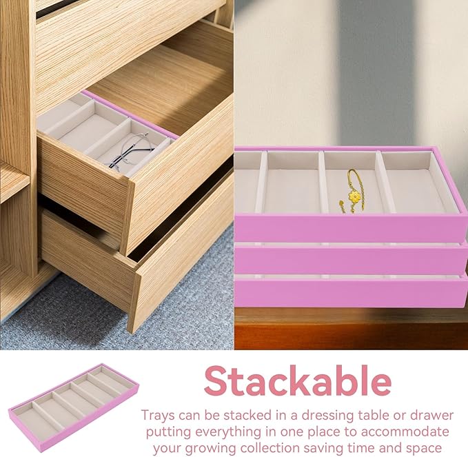 - STACKABLE DESIGN: The sunglasses organizer can be stacked on your dresser or in the drawer to keep everything in just one place. The surface of the jewelry box organizer is comfortable to touch, so you do not need to worry about scratching your sunglasses.