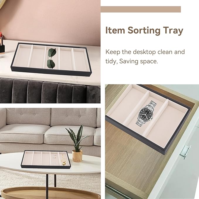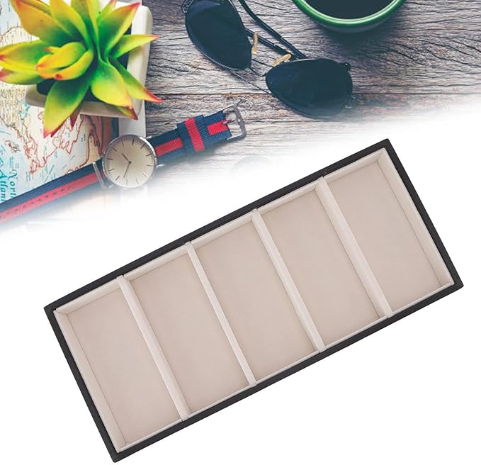 - Sunglass Organizer Tray: This 5-grid glasses organizer for women men helps you neatly organize and display your sunglasses, eyeglasses, watches, or jewelry. The sunglass drawer organizer compartments ensure easy access and protect your items from scratches while keeping them no dust and ready to wear. Sunglass tray organizer saves valuable time and space on your dresser or in drawers