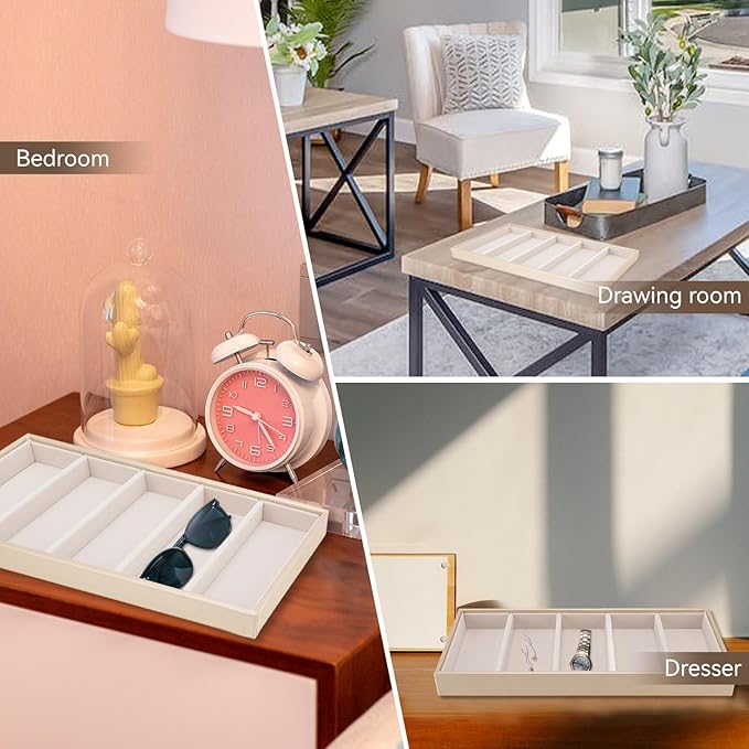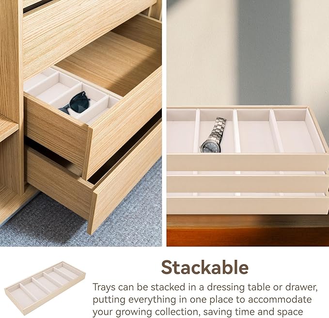 - STACKABLE JEWELRY DISPLAY ORGANIZER: The eyewear display case storage tray can be stacked on your dresser or in the drawer to keep everything in just one place to accommodate your growing collection and thus save time and space.