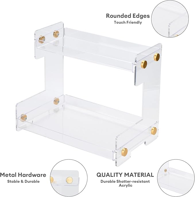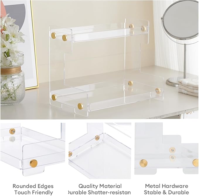 - 2-TIER BATHROOM COUNTERTOP ORGANIZER: Keep your daily items at your fingertips, Its 2-tier display shelves offer neat organization for your toiletries, cosmetics, makeup brush etc.