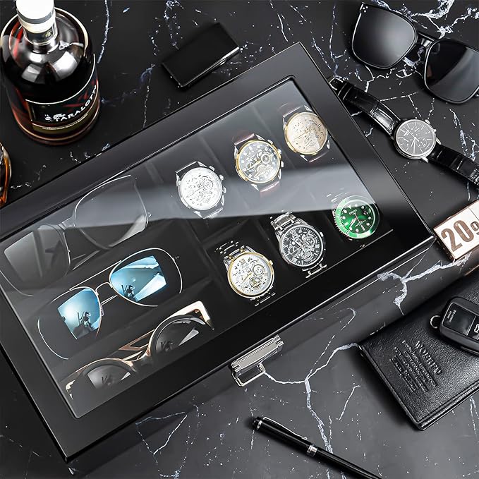 - Sturdy wide real glass window on the top allows solar powered watches to stay charged and displays watches in a presentable way