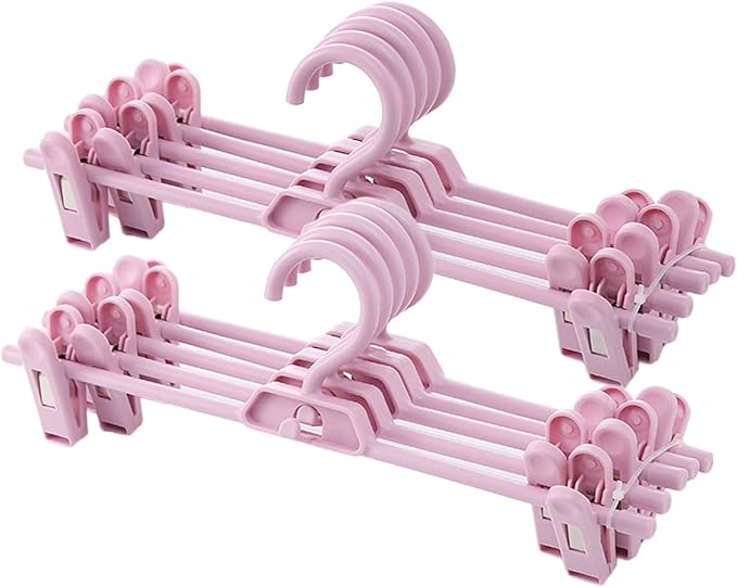 Pants Hangers, 10pcs Adjustable Clothes Hangers with Clips, Portable Drying Rack Travel Plastic Non-Slip Clothes Drying Hanger for Kids Or Adults Garments (Pink)