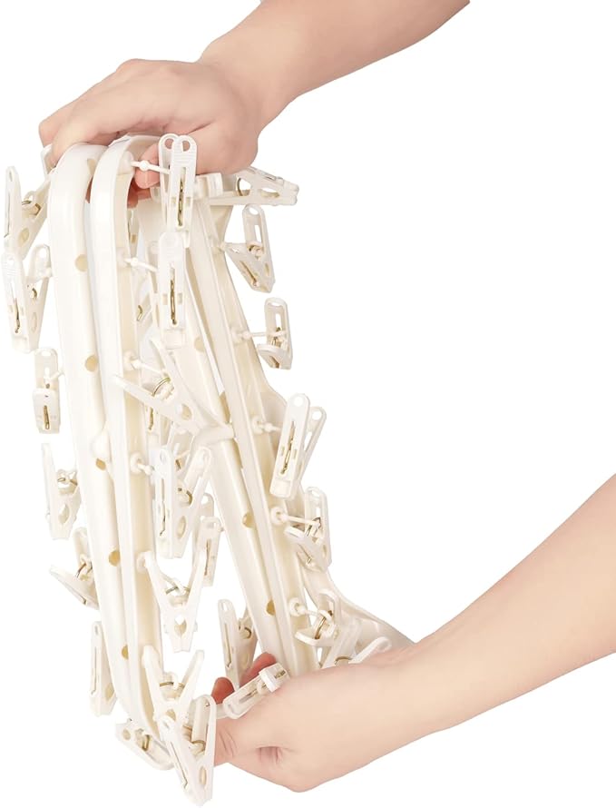 Foldable Clothes Drying Rack with 32 Drying Clips Wind-Proof Hook Underwear Hanger Plastic Laundry Clip for Socks Bras (White)