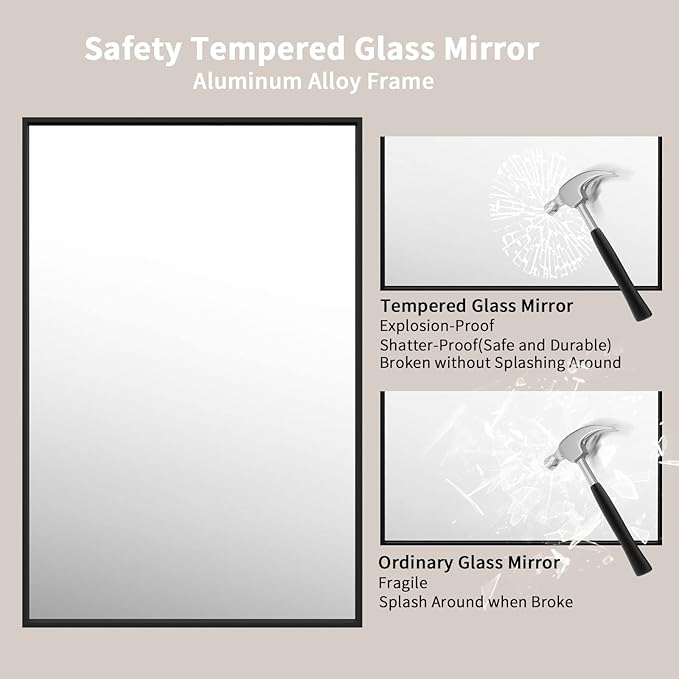 - 【Safe & Secure Package】: The package for this wall mounted bathroom mirror is well and securely designed with all-around protective Styrofoam with passed drop test. no worry about the breakage.