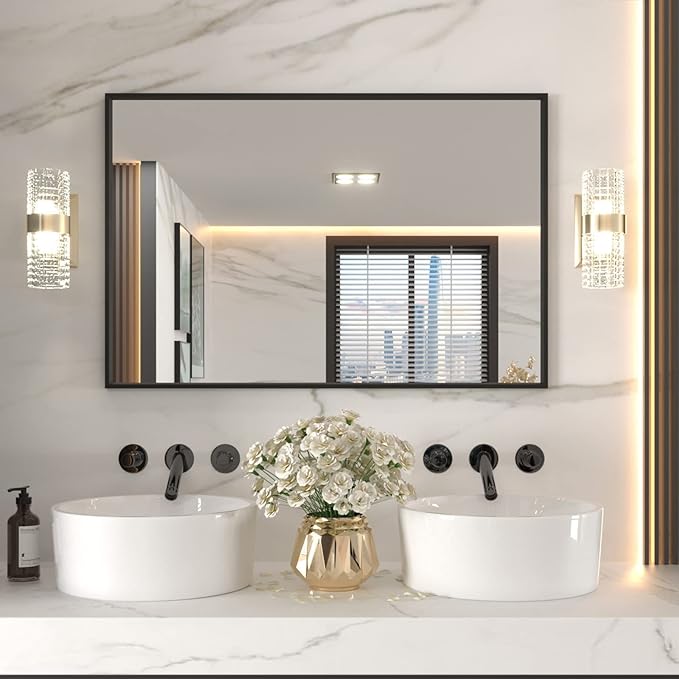 - 【Clear Reflection & NO Distortion】: LOAAO black rectangle mirror is designed with HD float glass to deliver a clear reflection with no distortion. clear lines, simple modern design.