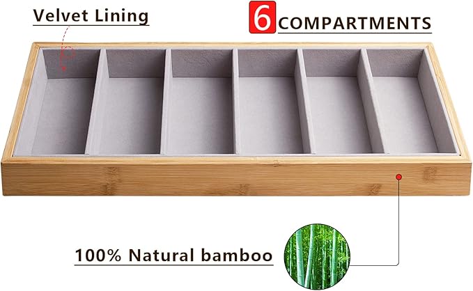 - Materials - Constructed with 100% natural bamboo frame,sturdy and durable. Interior soft flannel keeps your sunglasses, eyeglasses, jewelry well against dust, fingerprints, scratches, damages.Better yet, this sunglasses tray could be easily wiped off dirt with a damp cloth.