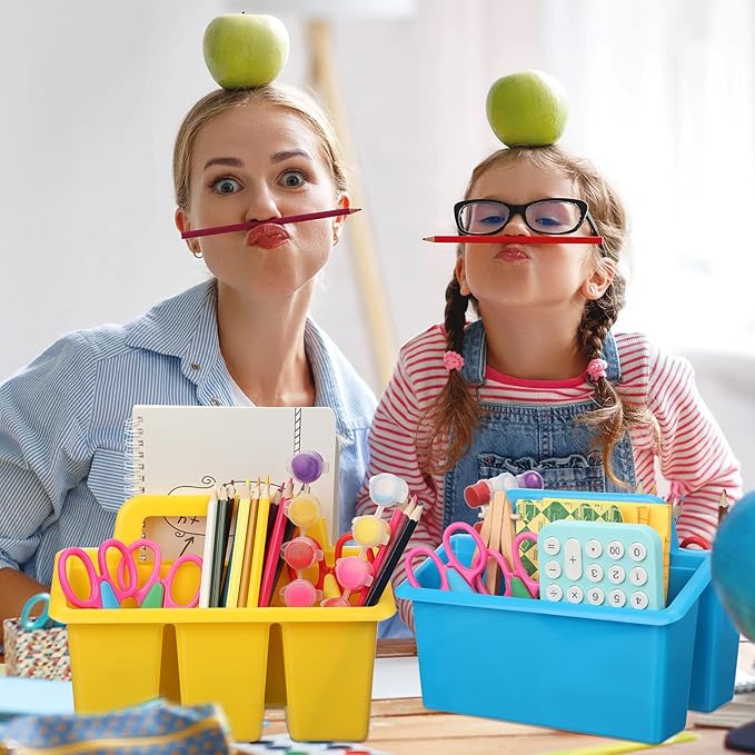- Package Quantity: you will receive 12 pieces of multicolored storage caddies bulk with handle in different colors; Each storage caddy has 4 separate compartment inside, they can store kids' drawing tools, pencils, glue sticks; The compartment design will make your items look very neat and simple