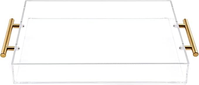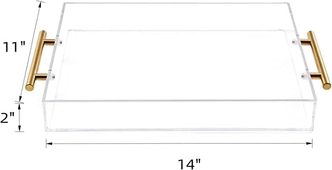 11"x14" Clear Acrylic Serving Tray with Golden Handles, Sturdy Huge Capacity Acrylic Tray for Coffee, Juice, Kitchen and Desk Organizer (11"x14")